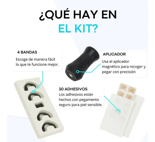 Starter Kit: 1 clip AirBand Mag™ + base/soporte + set de 30 adhesivos hipoalergénicos. ¡¡¡¡🎁🎁🎁 de regalo 30 adhesivos mas!!!!